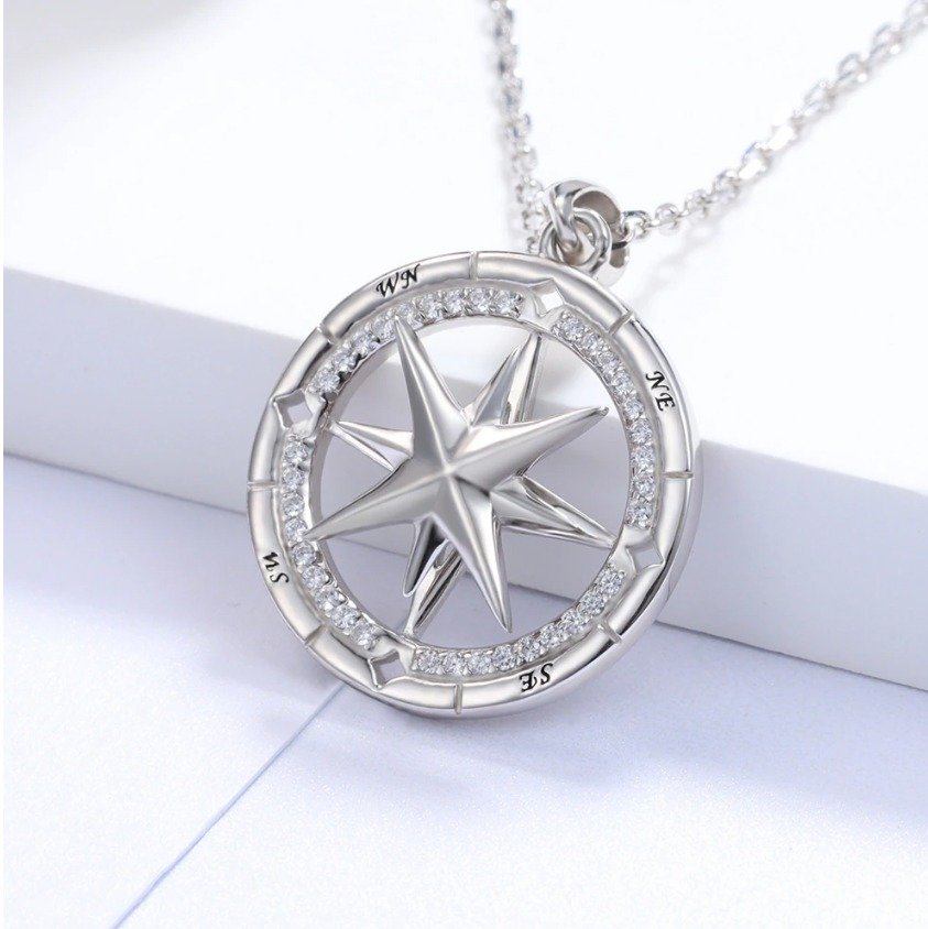 18K 925 Sterling Silver Follow Your Dream Rotation Star Compass Pendant Necklace