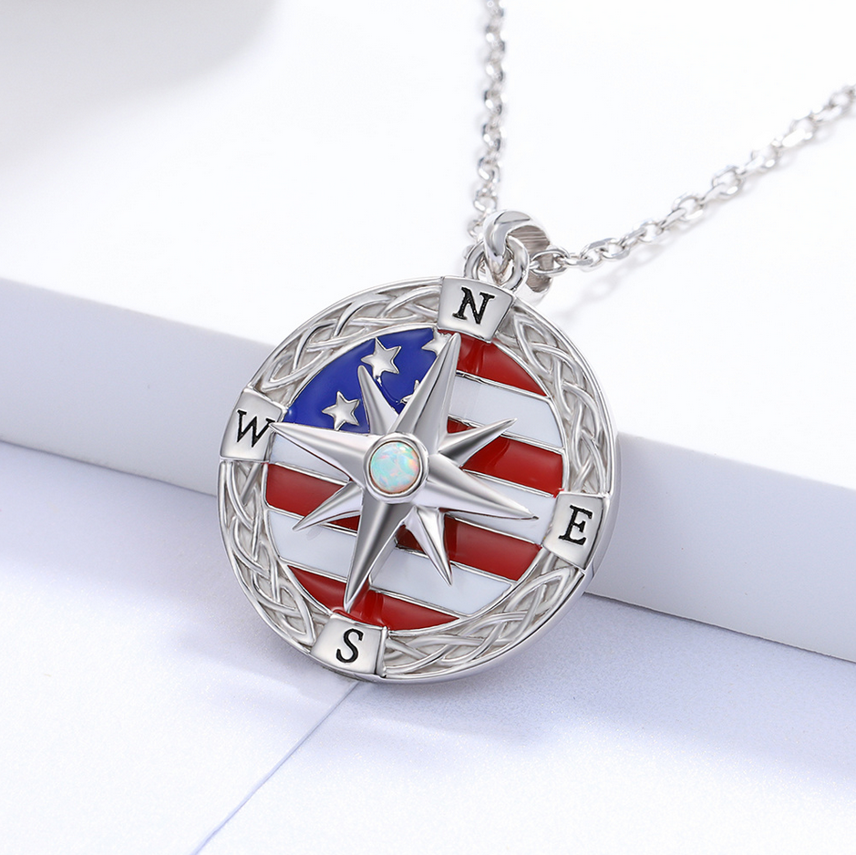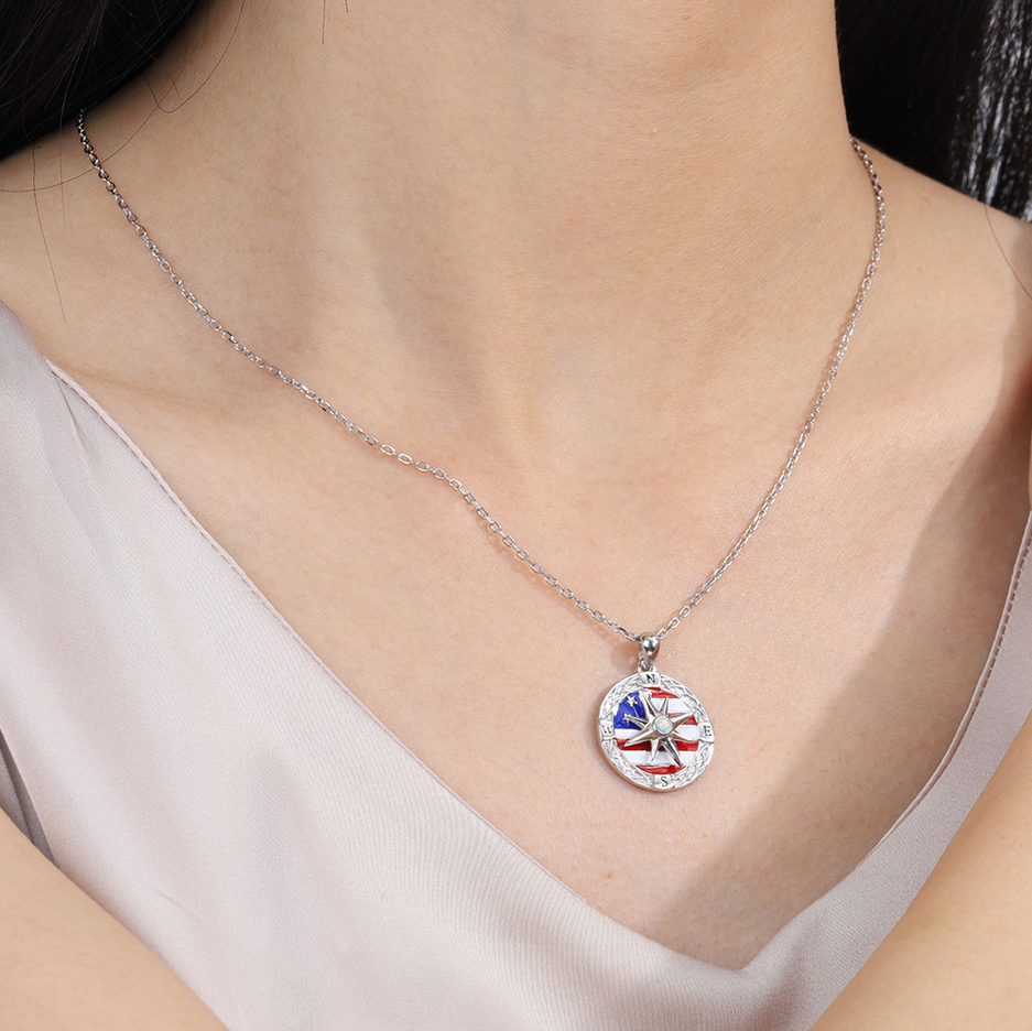 18K 925 Sterling Silver Forever USA Rotation Star Compass Pendant Necklace