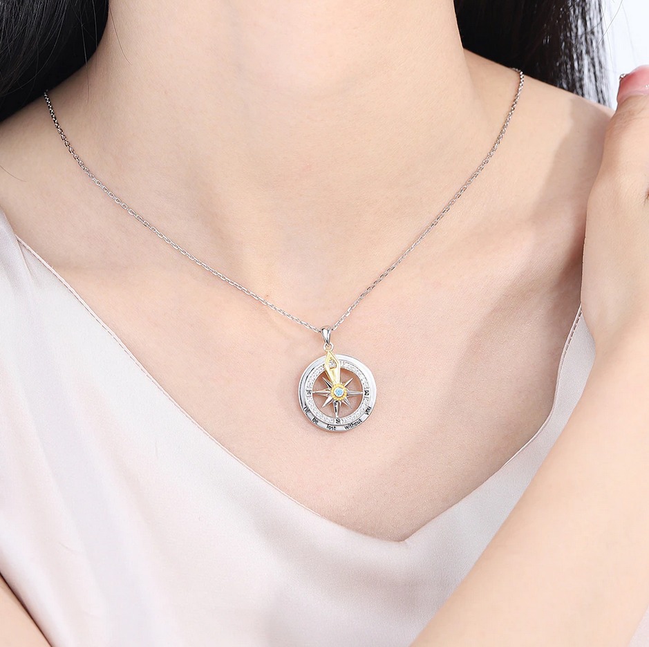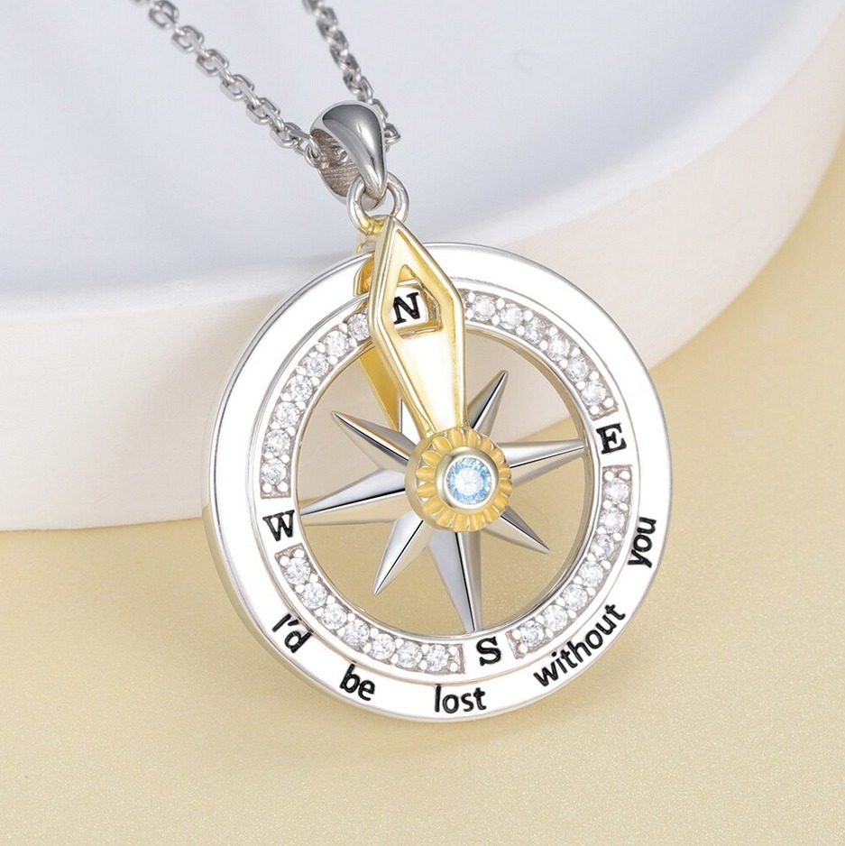 18K 925 Sterling Silver “Lost Without You” Inspirational Rotate Compass Pendant