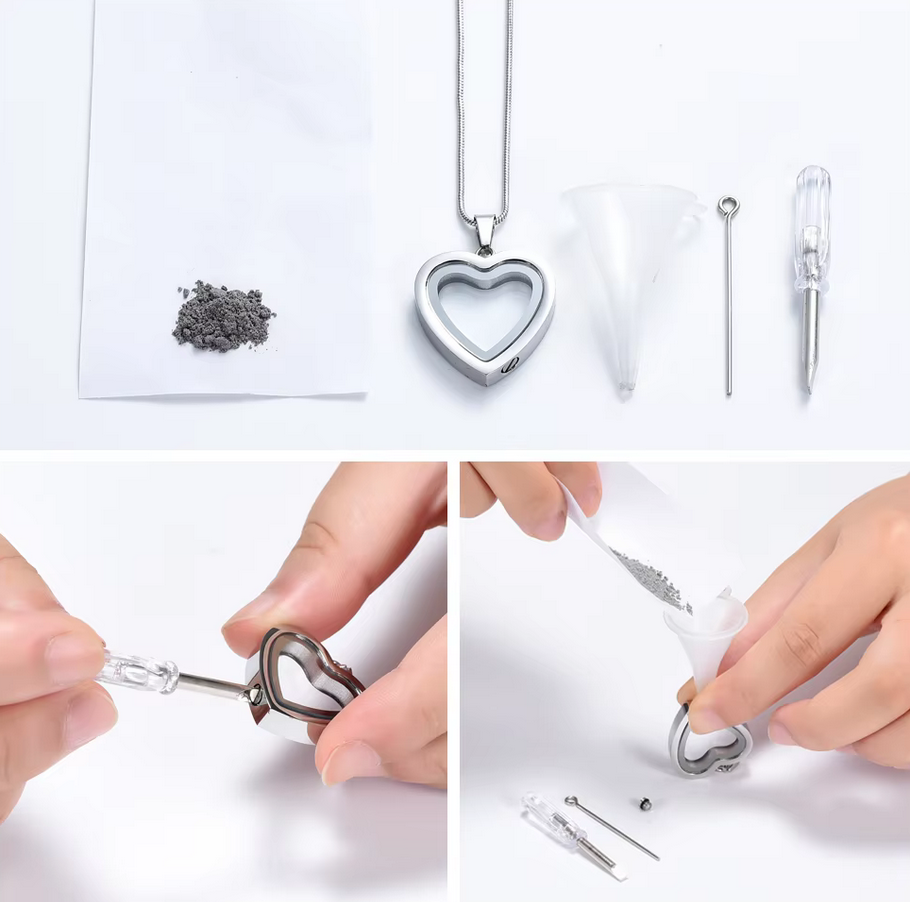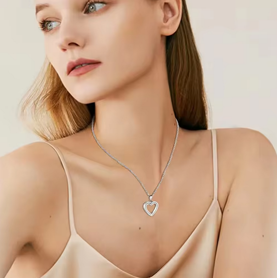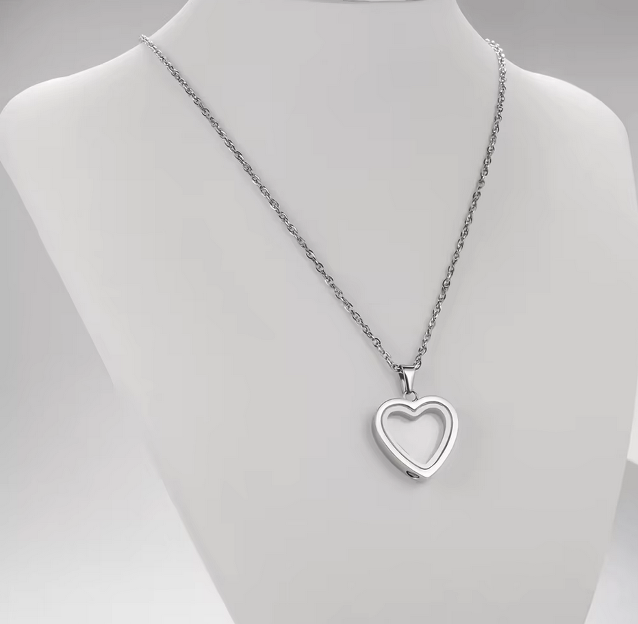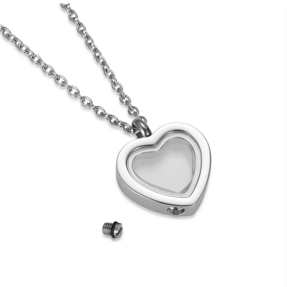 316L Stainless Steel Cremation Keepsake Patterned Glass Heart Pendant Necklace
