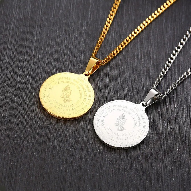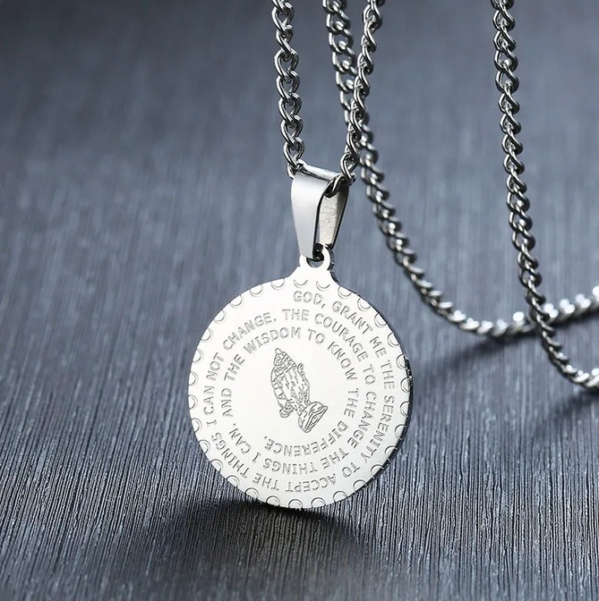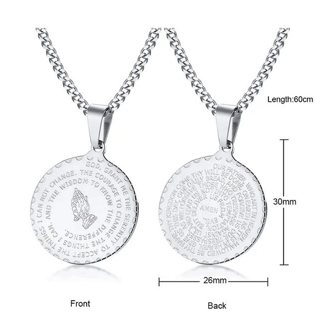 316L Stainless Steel Double-Sided Serenity + Our Father Prayer Pendant Necklace