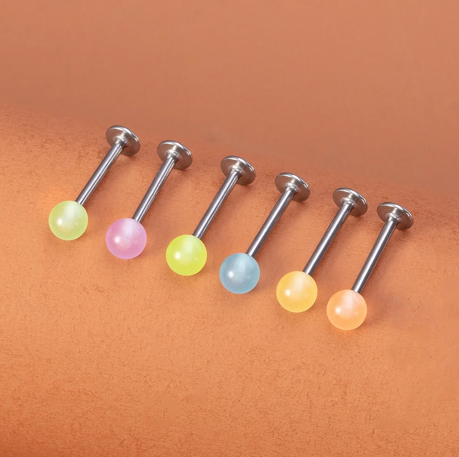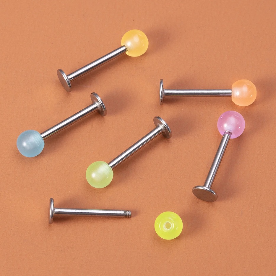 6PC Stainless Steel Glow in the Dark Acrylic Ball 16G Labret Bar Piercing