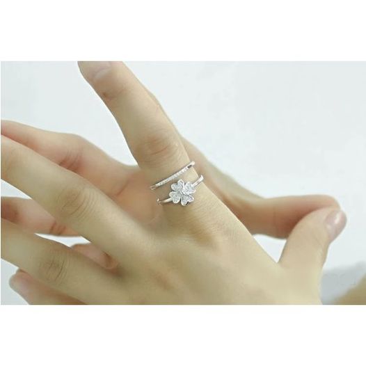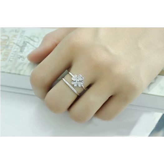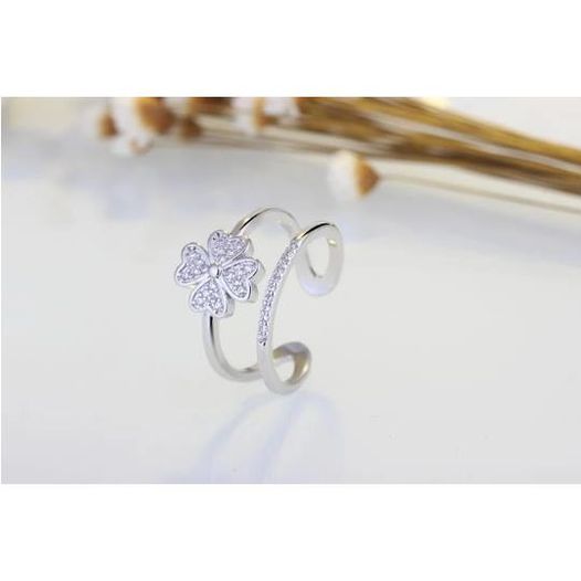 925 Sterling Silver Double Layer Lucky Four Leaf Clover Zirconia Ring