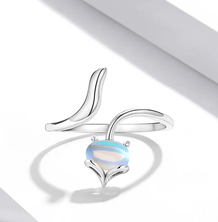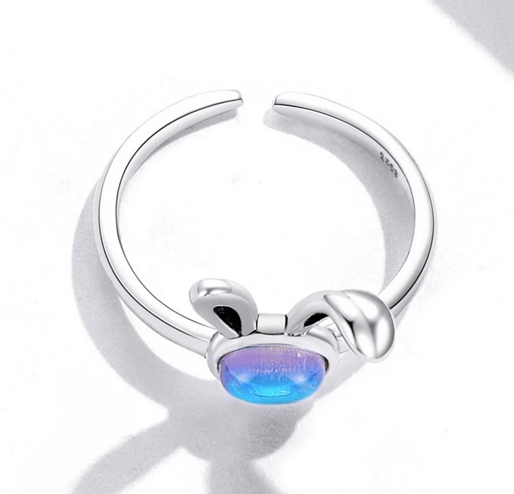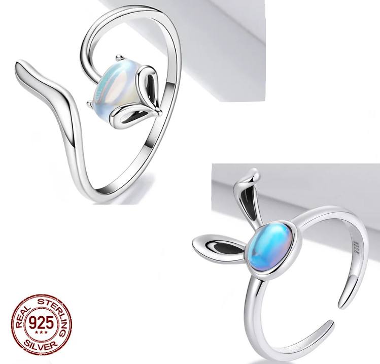 Authentic 925 Sterling Silver Sly Fox/Bunny Adjustable Moonstone Ring