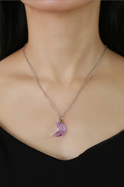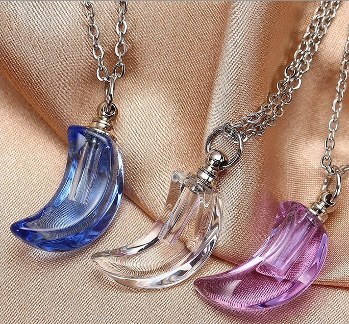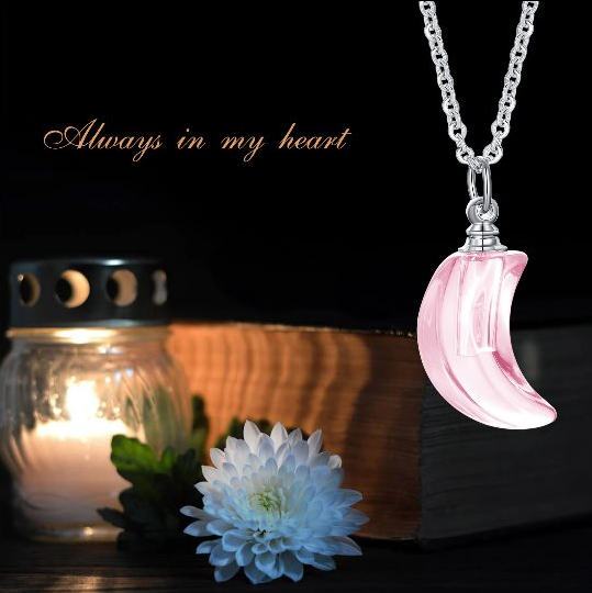 Cremation Ashes Stainless Steel Elegant Moon Glass Keepsake Necklace