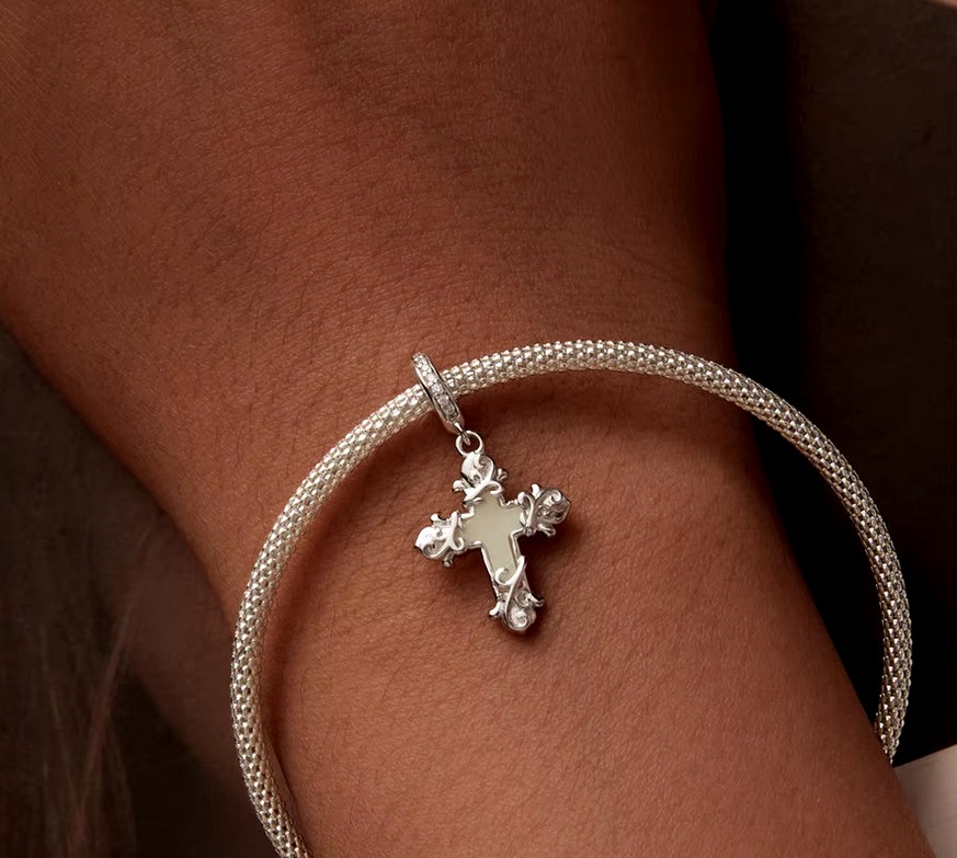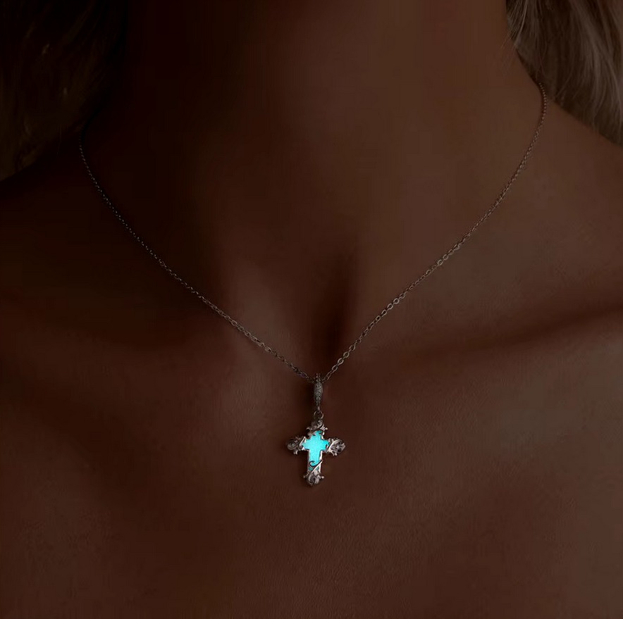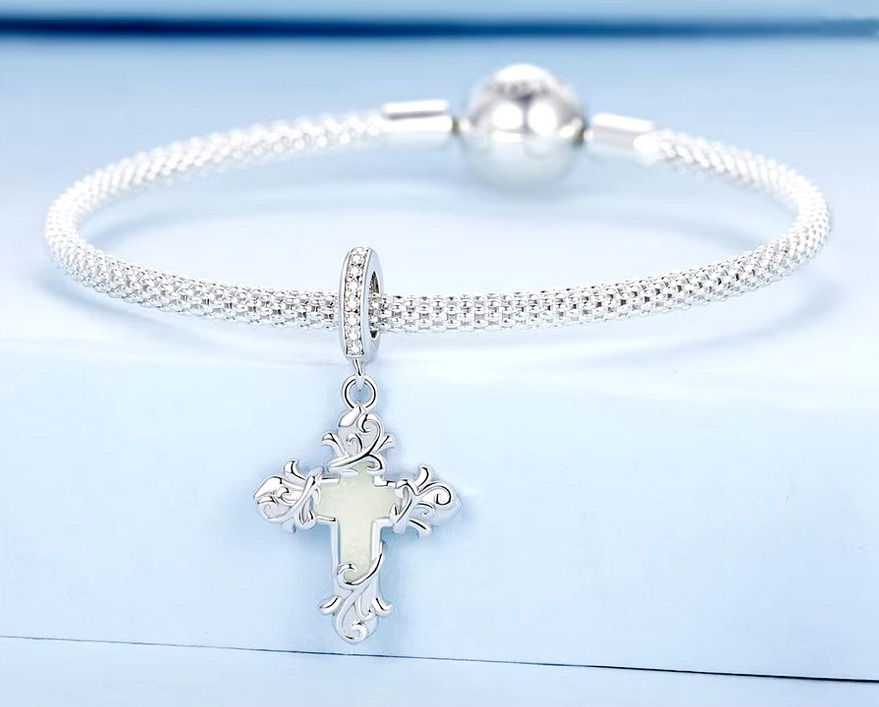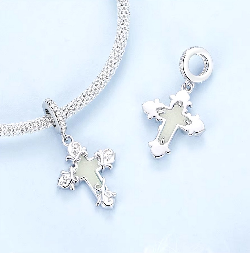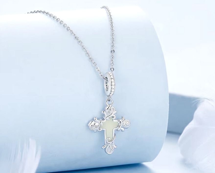 Exquisite Platinum 925 Sterling Silver Glow In The Dark Cross Charm Pendant