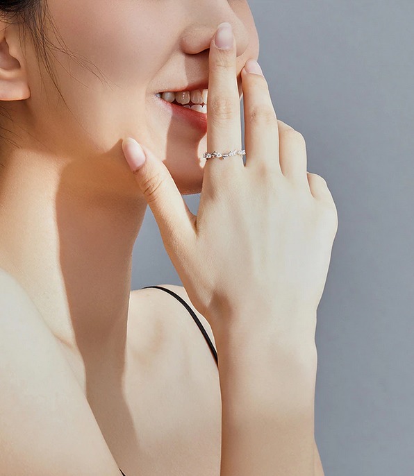 Exquisite Platinum 925 Sterling Silver Zircon Flower Vine Fine Ring