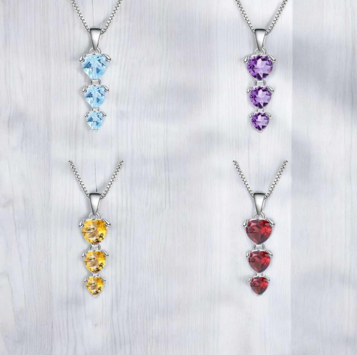 | Color | Sky Blue Topaz, Purple Amethyst, Yellow Citrine, Red Garnet |
