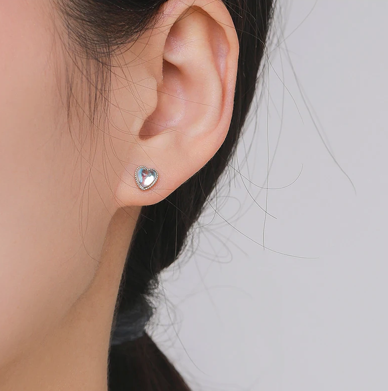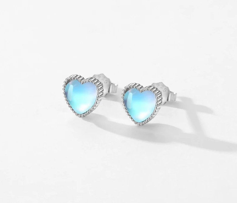 Genuine 925 Sterling Silver Gradient Moonstone Heart Stud Earrings