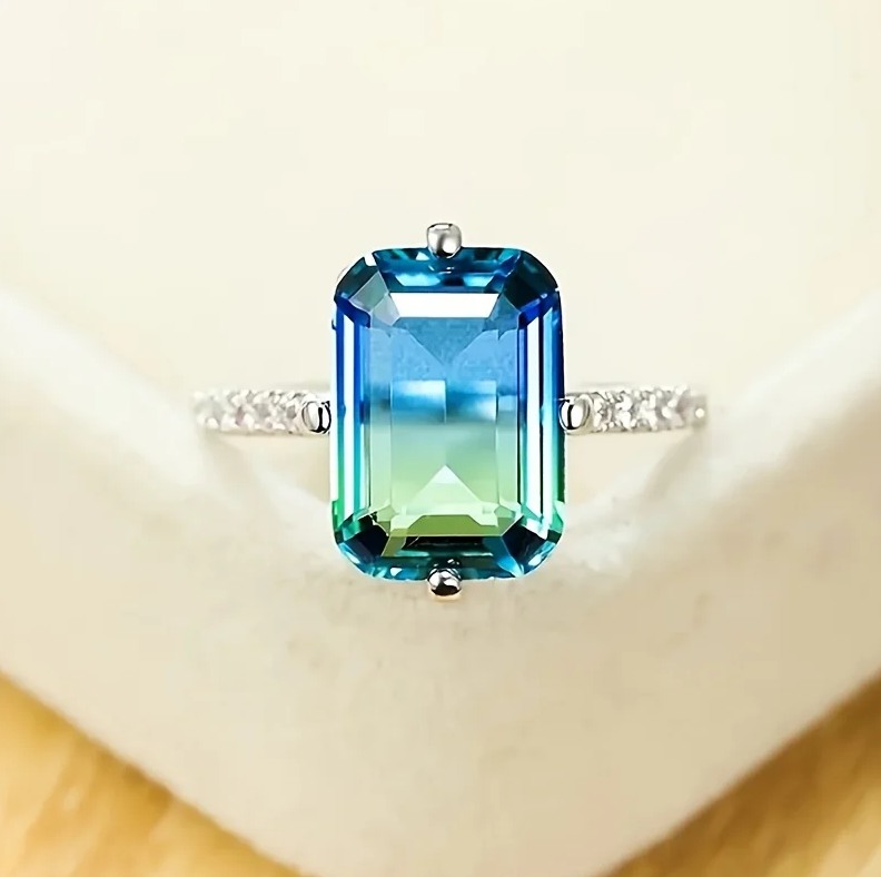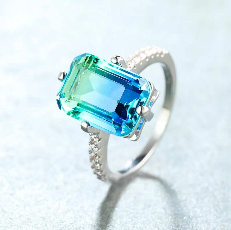 Luxurious Silver Plated Gradient Zirconia Crystal Ring