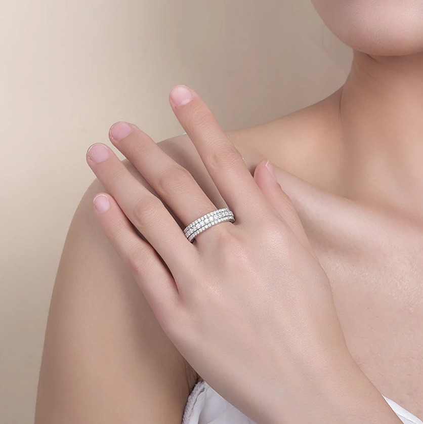 Luxury 18K 925 Sterling Silver 3 Rows Full Moissanite Rotation Ring