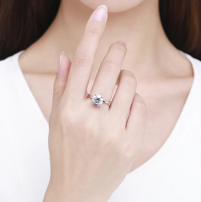 Luxury 925 Sterling Silver Classic 3CT Dazzling Zircon Solitaire Ring