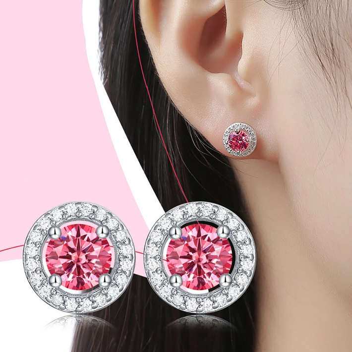Luxury S925 Sterling Silver Luscious Pink Moissanite Stud Earrings
