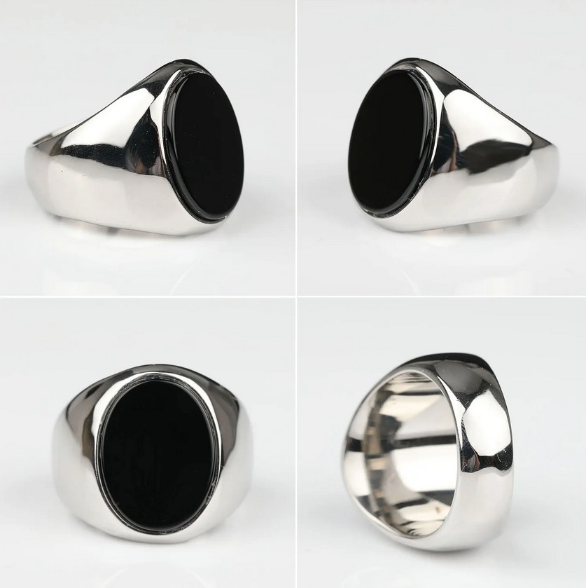 Men’s 316L Stainless Steel Black Oval Signet Ring