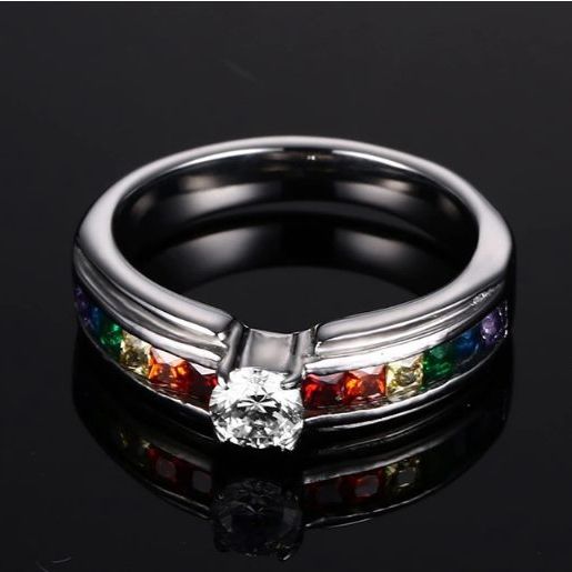 “Never Fade” High Quality 316l Stainless Steel Rainbow Pride Zirconia Ring