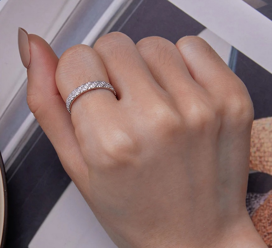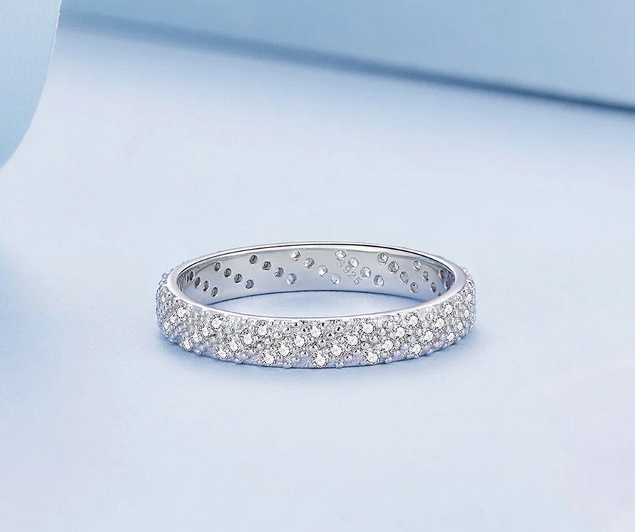 Platinum 925 Sterling Silver Dazzling Zircon Luxury Eternity Band