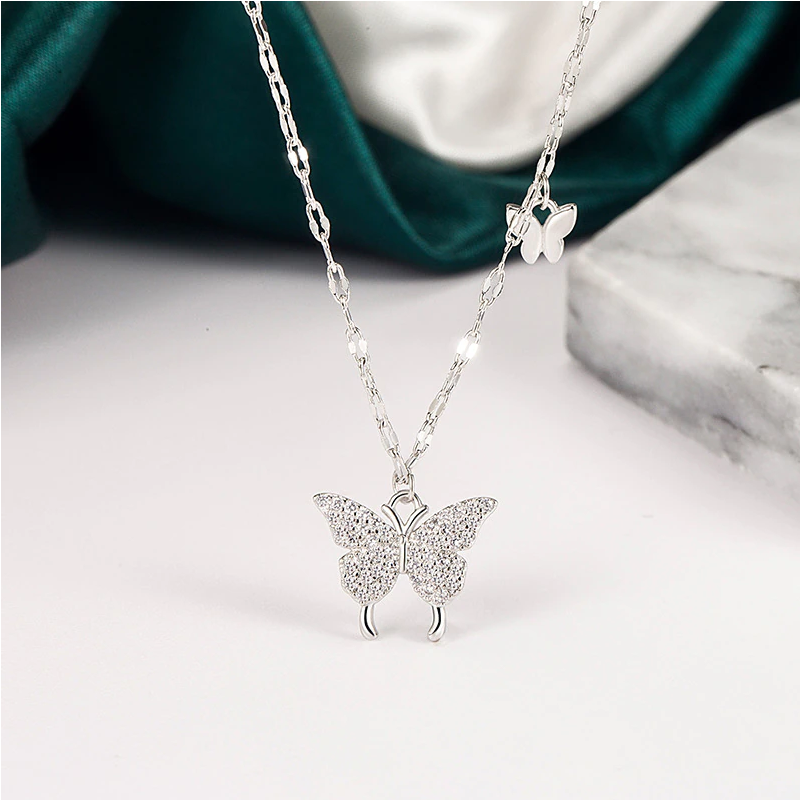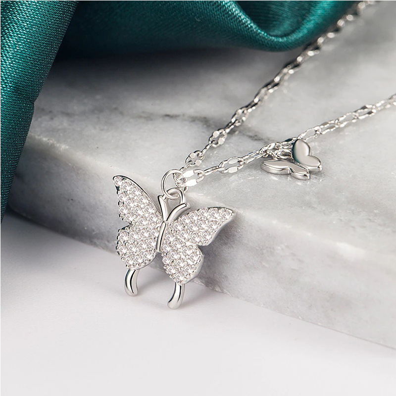 Silver/Gold Plated Zirconia Double Butterfly Pendant Choker