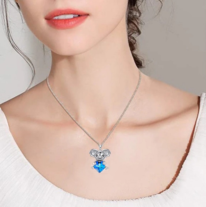 Silver Plated Koala Hugs Crystal Heart Pendant Necklace
