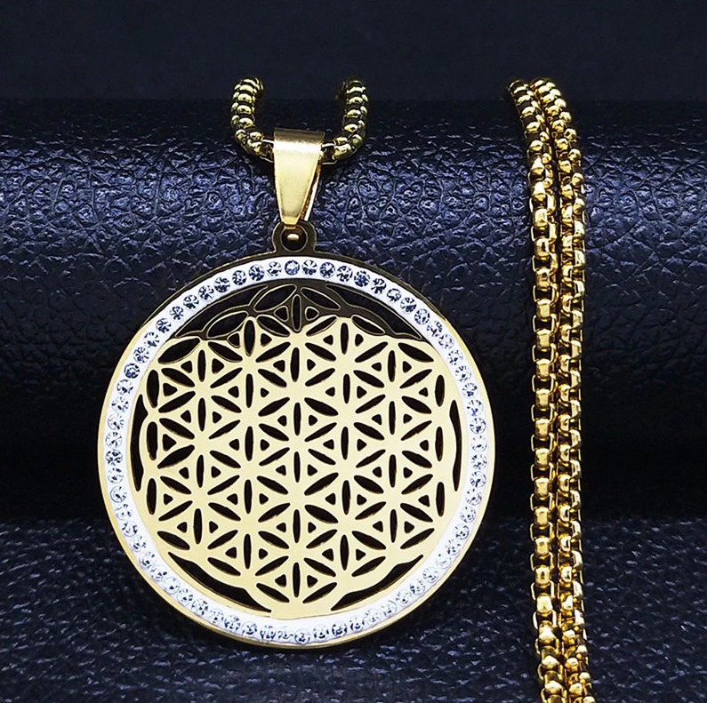 Stainless Steel Seed of Life Crystal Pendant Necklace – 24″