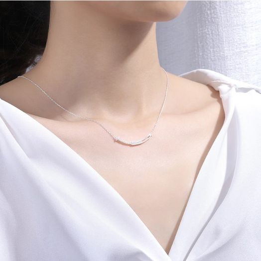 Sterling Silver Plated AAA+ Zirconia Smile Pendant Choker