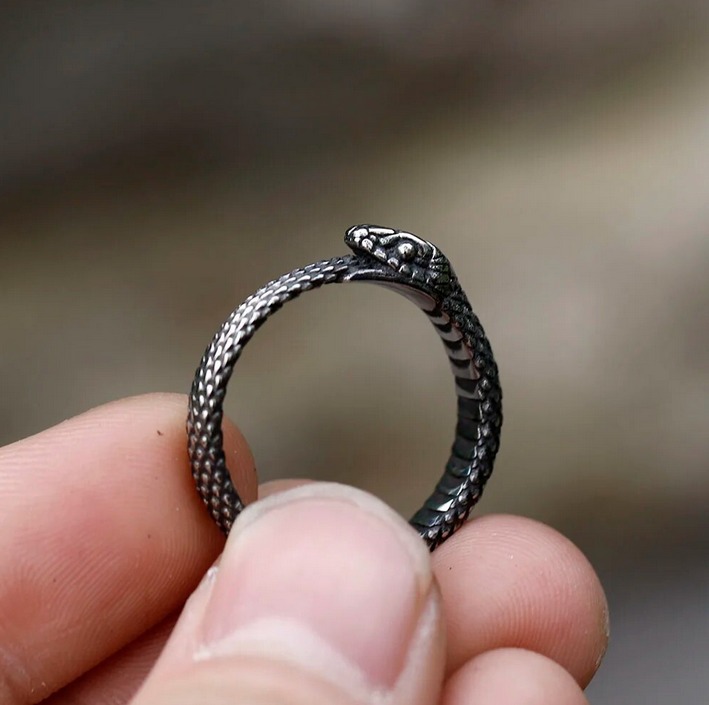 Vintage 316L Stainless Steel Viking Snakehead Amulet Ring